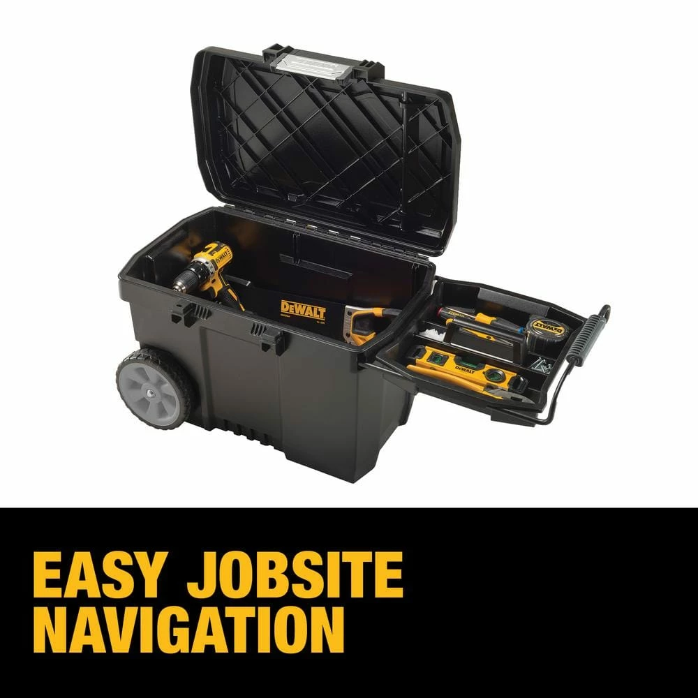 The DEWALT DWST33090 15 Gal. Contractor Chest is as versatile as it is tough. This chest features large 7 in. wheels for easy steering on the job-site. A 3-Position tray is included for organization of small parts inside or outside on extended handle.
